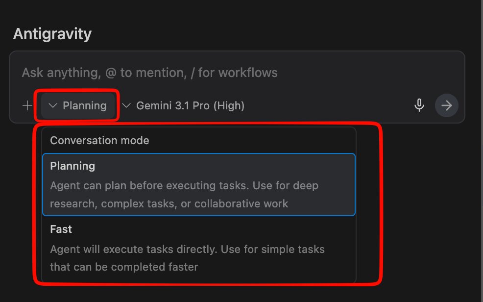 チャットの入力欄には、「Planning」、「Gemini 3.1 Pro(Hight)」の2つのドロップダウンがあります。