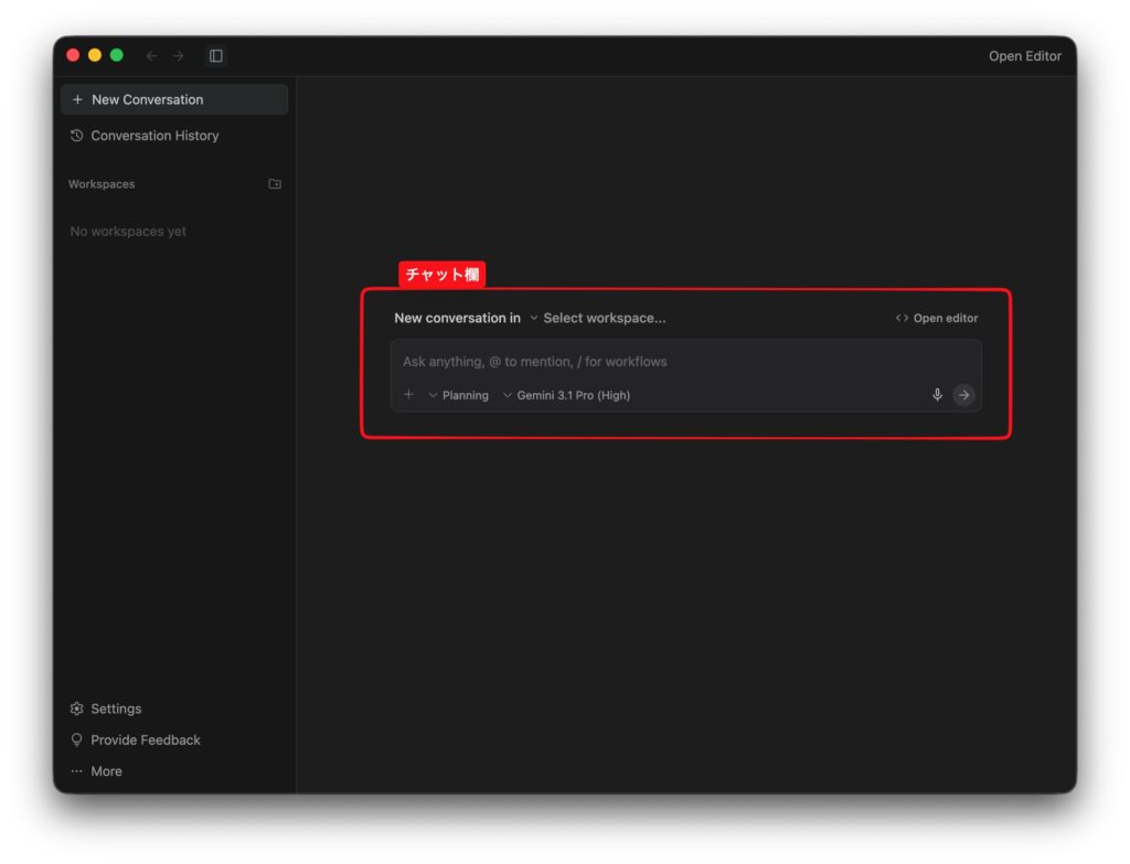 エージェントウィンドウで作業