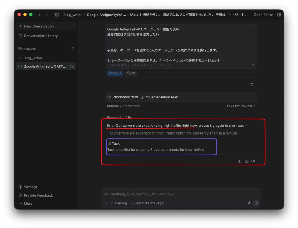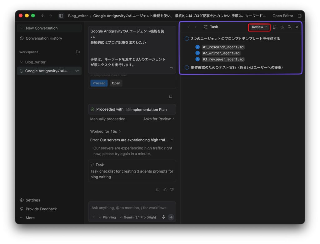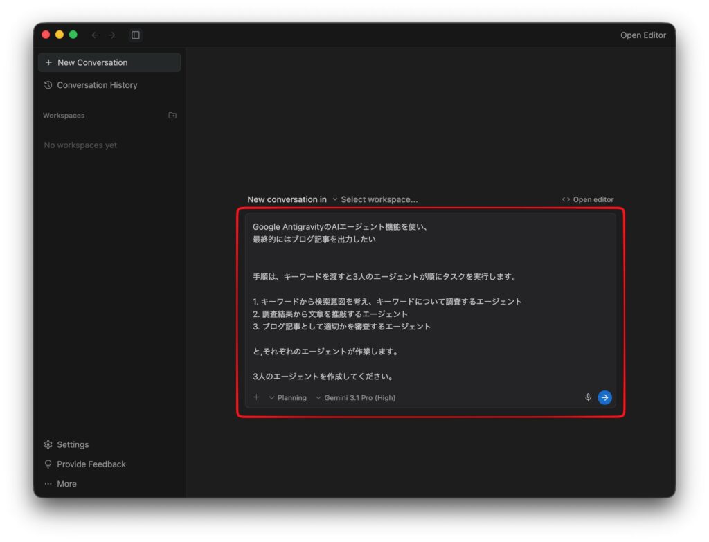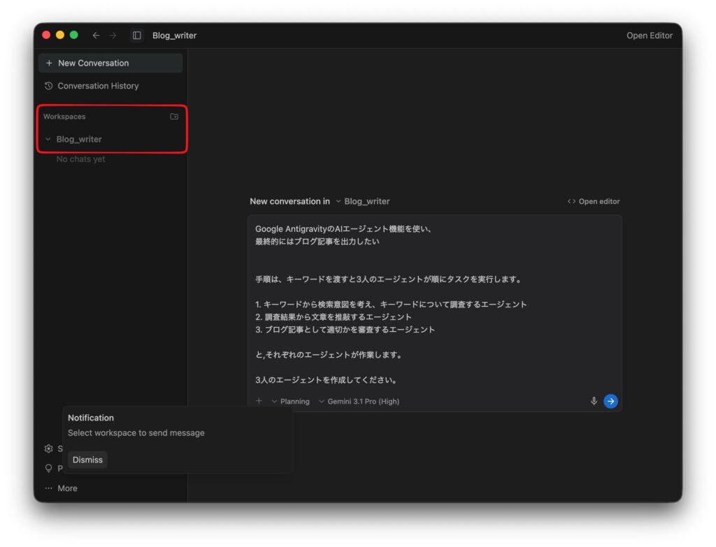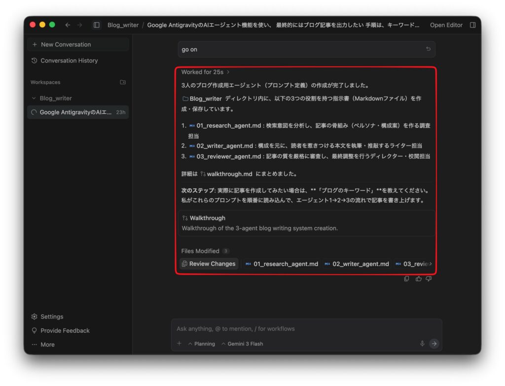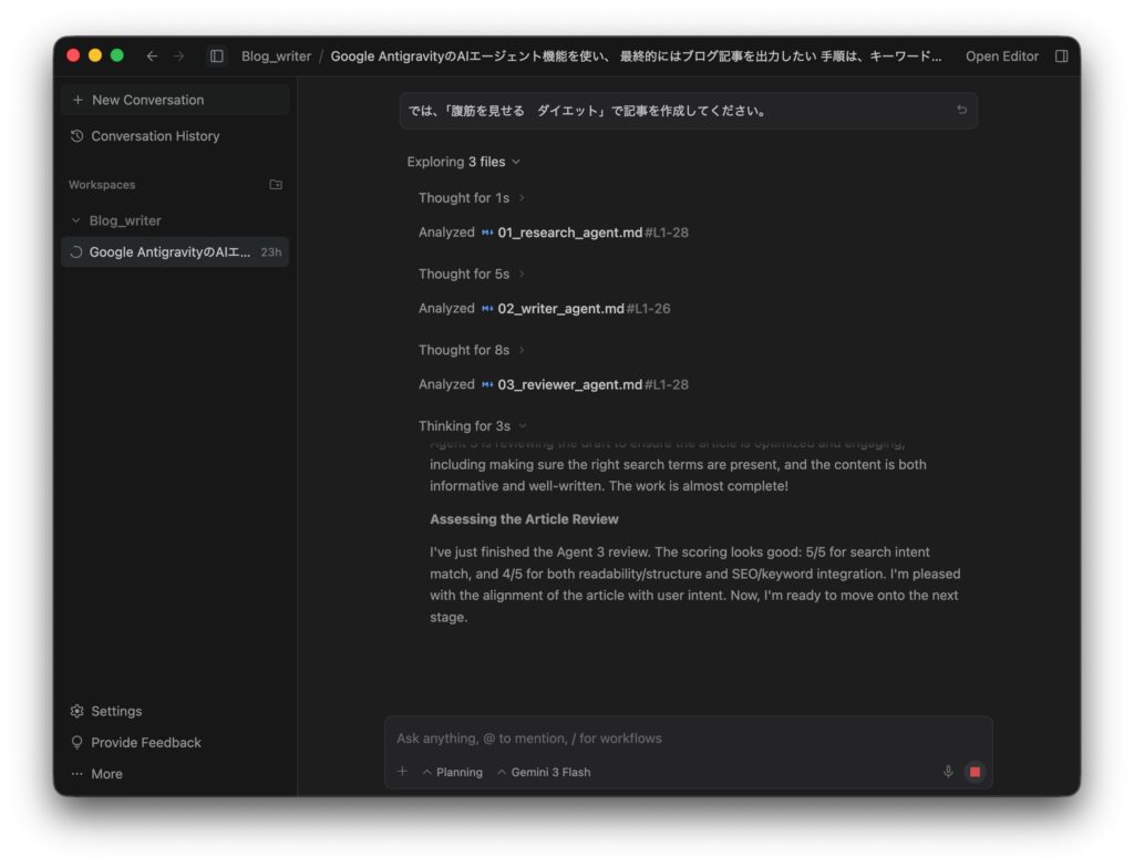 では、3人のエージェントを使ってブログ記事を作成します。